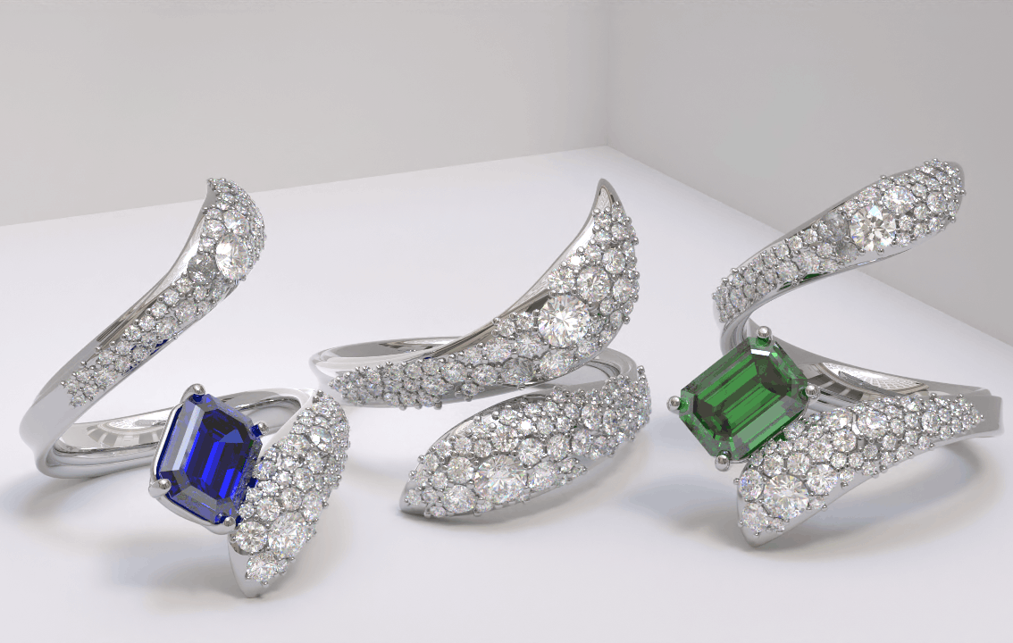 Each gemstone is selected for its character, color, and suitability for the design. The aim is not just to find something beautiful, but something that feels right for the story behind it.